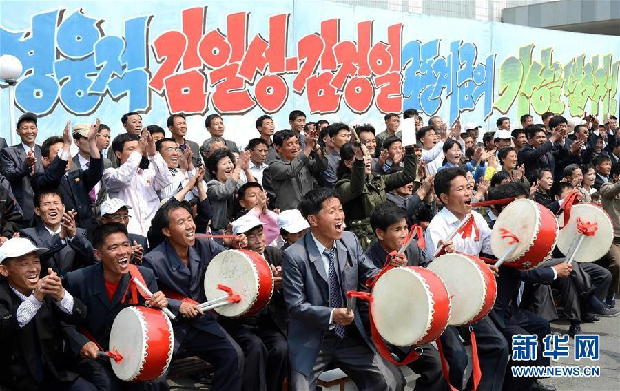 这张朝中社5月1日提供的照片显示,朝鲜劳动者为参加劳动节比赛的选手加油助威。新华社/朝中社