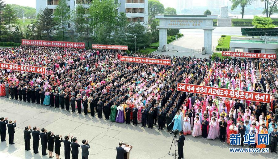 这张朝中社5月1日提供的照片显示,朝鲜当日在首都平壤的金正淑纺织厂举行中央报告大会,庆祝“五一”国际劳动节。新华社/朝中社