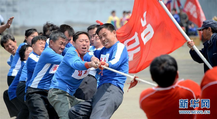 这张朝中社5月1日提供的照片显示,朝鲜劳动者参加拔河比赛。 当日,朝鲜举行多项活动,庆祝“五一”国际劳动节。 新华社/朝中社