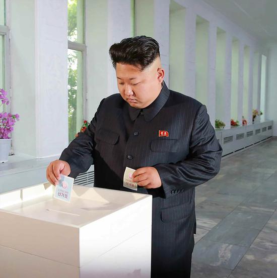 2015年,金正恩参加地方代议员选举投票。(韩国SBS新闻)